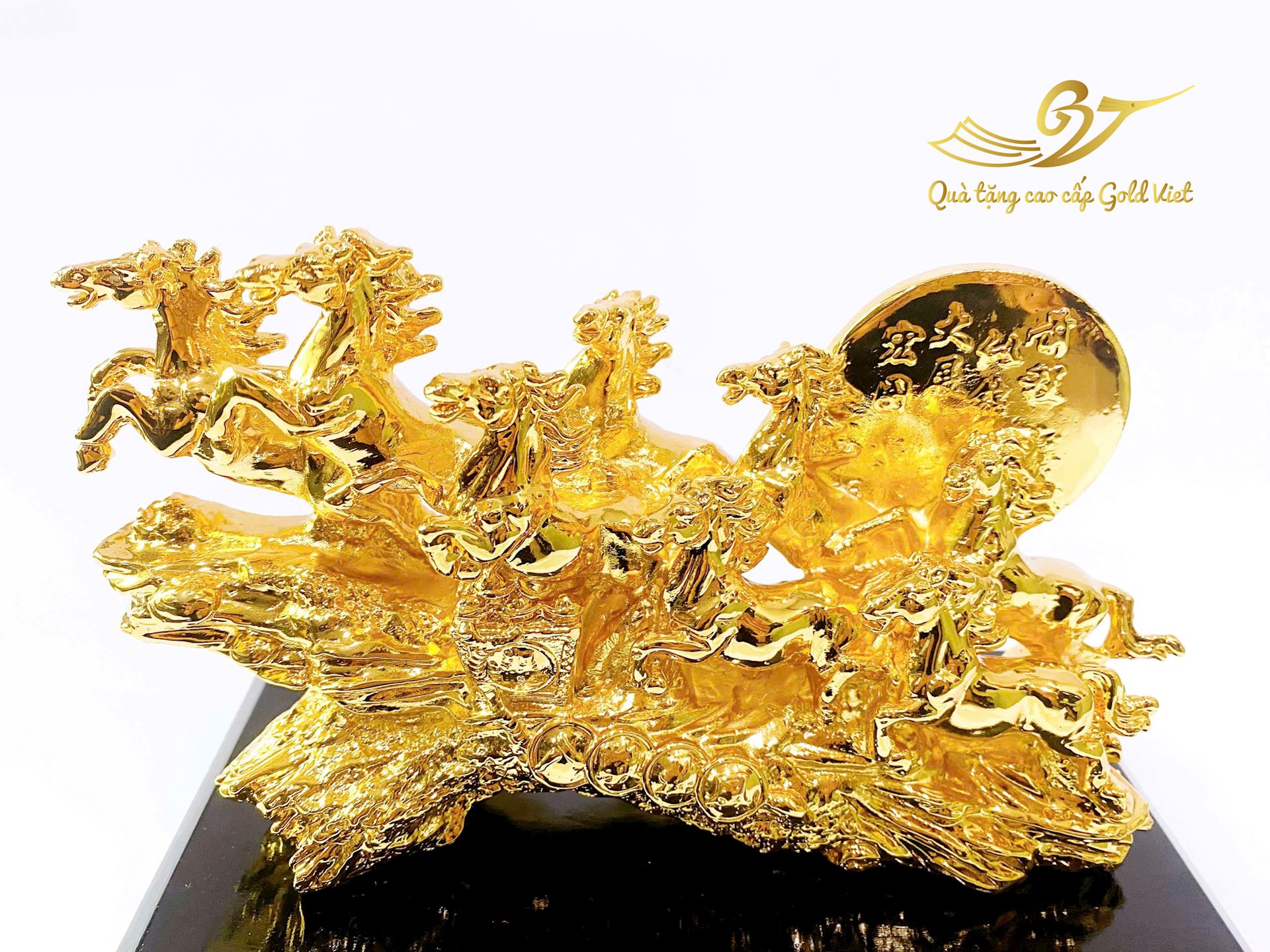 Tượng "Mã Đáo Thành Công" (thường là hình ảnh 8 chú ngựa đang phi nước đại) là một trong những biểu phẩm phong thủy được ưa chuộng nhất trong kinh doanh và đời sống. Khi được mạ vàng, bức tượng không chỉ tăng thêm giá trị thẩm mỹ mà còn mang những tầng ý nghĩa sâu sắc về tài lộc và quyền uy.